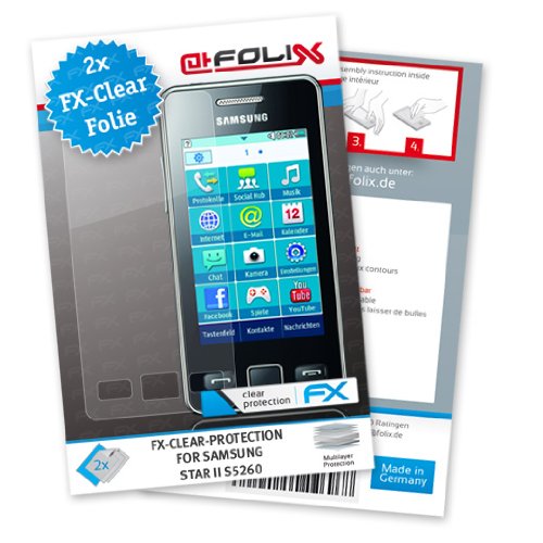 2 x atFoliX FX-Clear Invisible screen protector for Samsung Star II S5260 / Star 2, Star2, S-5260 - Ultra clear screen protection! Highest Quality - Made in Germany!